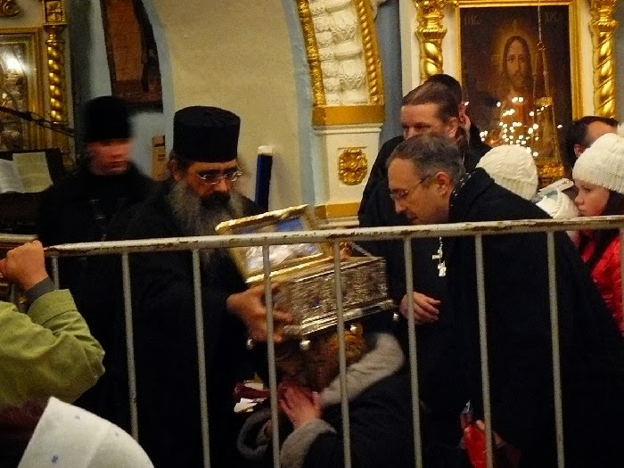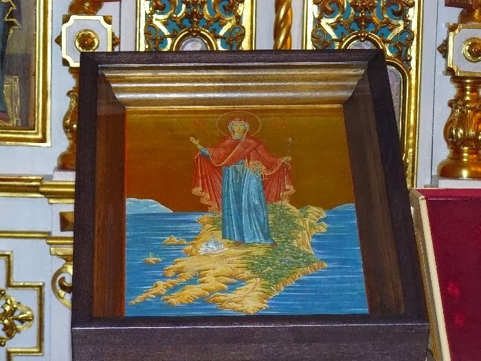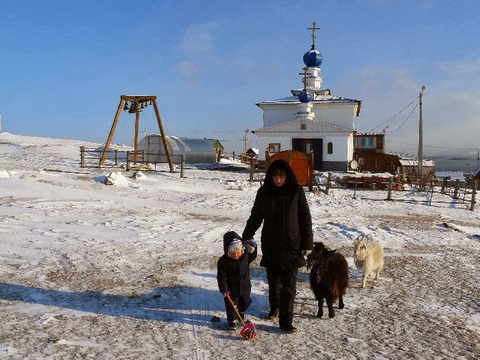 .......Το 2006, το Άγιον Όρος τους προμήθευσε με μία ξύλινη λειψανοθήκη που φέρει μικροσκοπικά μικροτεμαχίδια αγίων λειψάνων προς αγιασμό του ορθόδοξου πληρώματος της εκκλησίας τους. Και με αυτόν τον τρόπο, με την εικόνα και τα λείψανα, το Άγιον Όρος συνδέεται πνευματικά με την ενορία τους πάνω σε αυτό το μεγάλο ημιέρημο νησί, στη μέση της Βαϊκάλης, στην παγωμένη Σιβηρία.